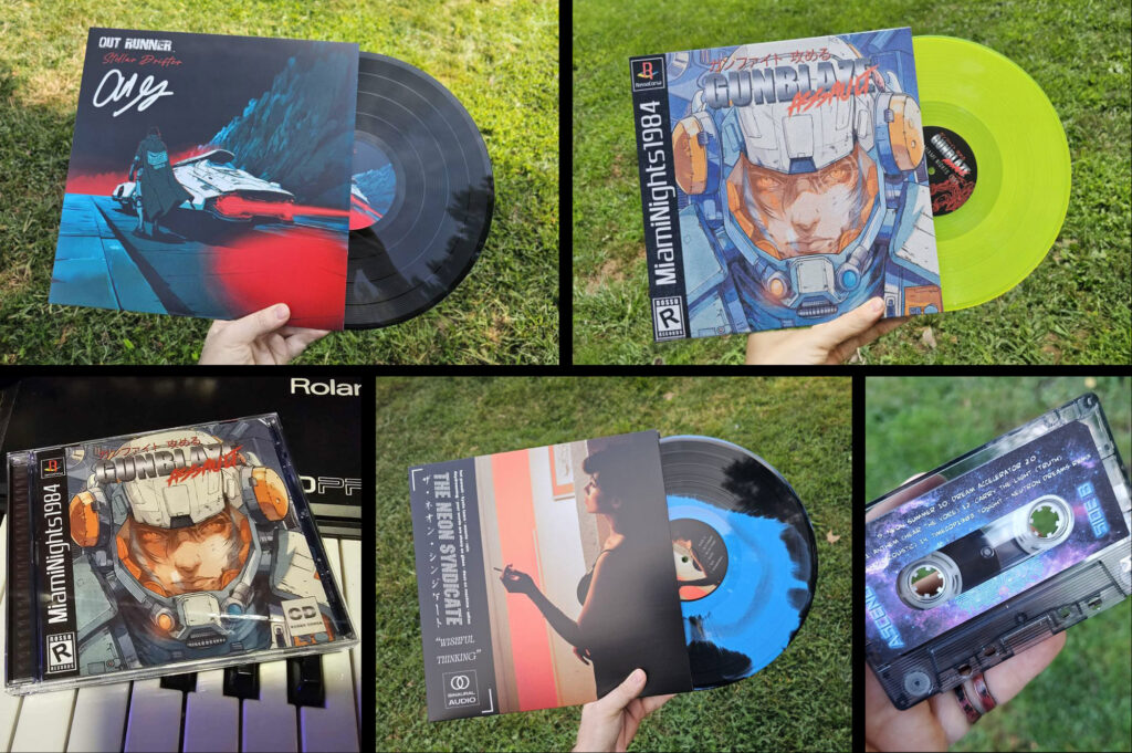 As a RetroSynth artist, traditional merch such as vinyl, CDs, and cassettes can be preordered at full cost or offered through a preorder campaign.